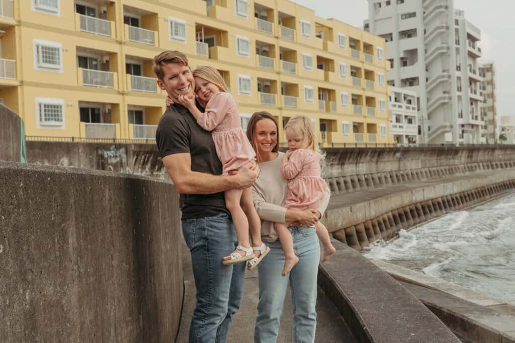 In Okinawa our family loves to hang out at the beach, go camping, go on bike rides, and experiencing the Okinawa culture, especially the food.